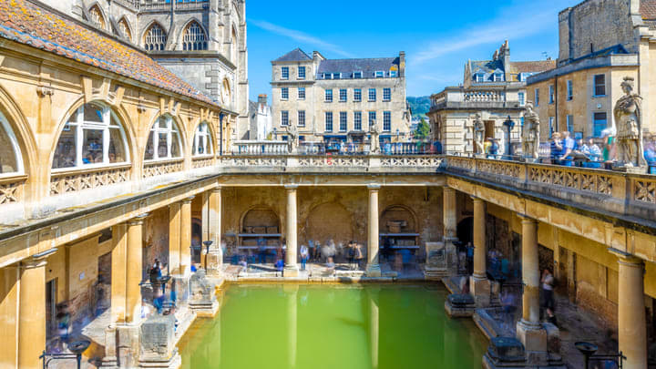 A apenas uma hora e 20 minutos de trem de Londres, a bela Bath dispensa apresentações. É claro que um tour por the ancient Roman Baths é absolutamente essencial. Mas, infelizmente, você não pode mergulhar aqui. Então, com o desejo despertado, vá direto para o Thermae Bath Spa, localizado na apropriadamente chamada Hot Bath Street. Este paraíso no terraço apresenta uma piscina externa natural e rica em minerais com vistas panorâmicas da Abadia de Bath e das colinas circundantes. O sinalizado Bath Skyline walk leva você a essas mesmas colinas em uma rota circular de quase 10 km através de vales isolados e bosques antigos, tudo com vistas deslumbrantes da cidade.